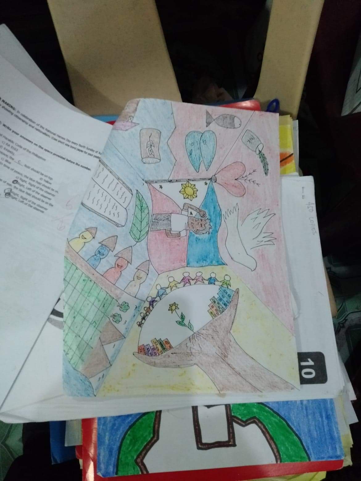 This is our project in our Arts. I really don't have any talent or skills when it comes to arts like drawing, painting and etc. I just try my best to have a good one. The message of this art is you have to serve your country like doing some good things or helping each other and give the best you can be for your country. I hope you will love your own country and help to rise up if there are so many destructions. Thank you for reading my short story! Have a good day! :)