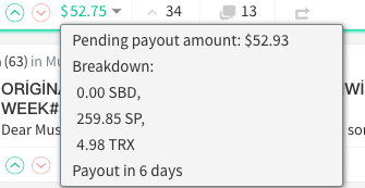 Ожидающие вознаграждения TRX по почте будут отображаться рядом с СП и СБД. Просто нажмите на стрелку вниз рядом с итоговой суммой выплат, чтобы увидеть вознаграждения.