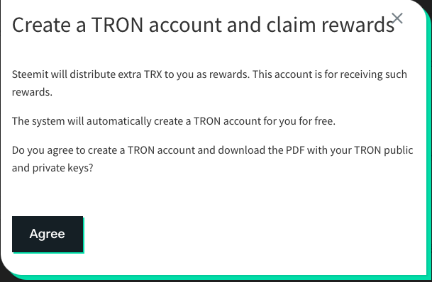 Вам будет представлено всплывающее окно с просьбой согласиться на создание бесплатной учетной записи TRON....