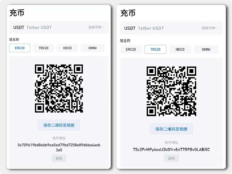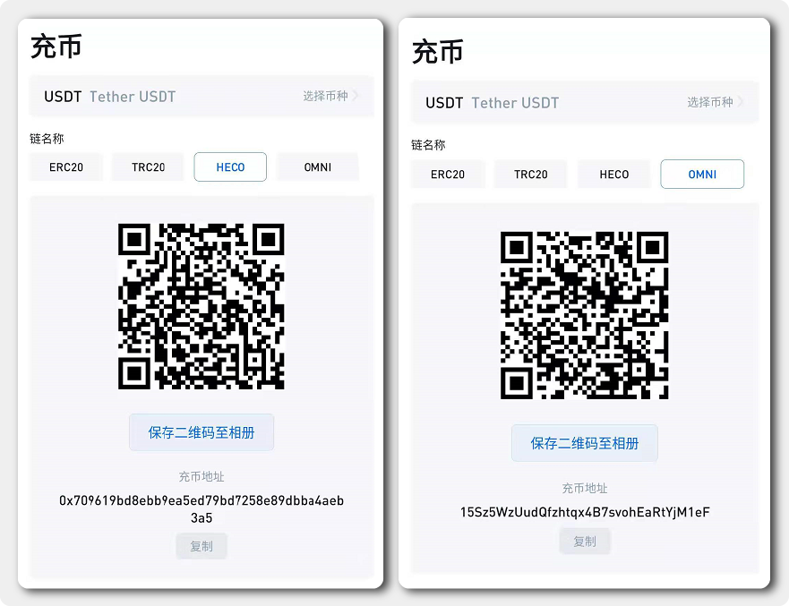 接收地因为协议的不同充币地址也不尽相同,但相同协议的地址却只有一个,只有用户在转账时出入地都选择了相同的协议才能让资产顺利到账。