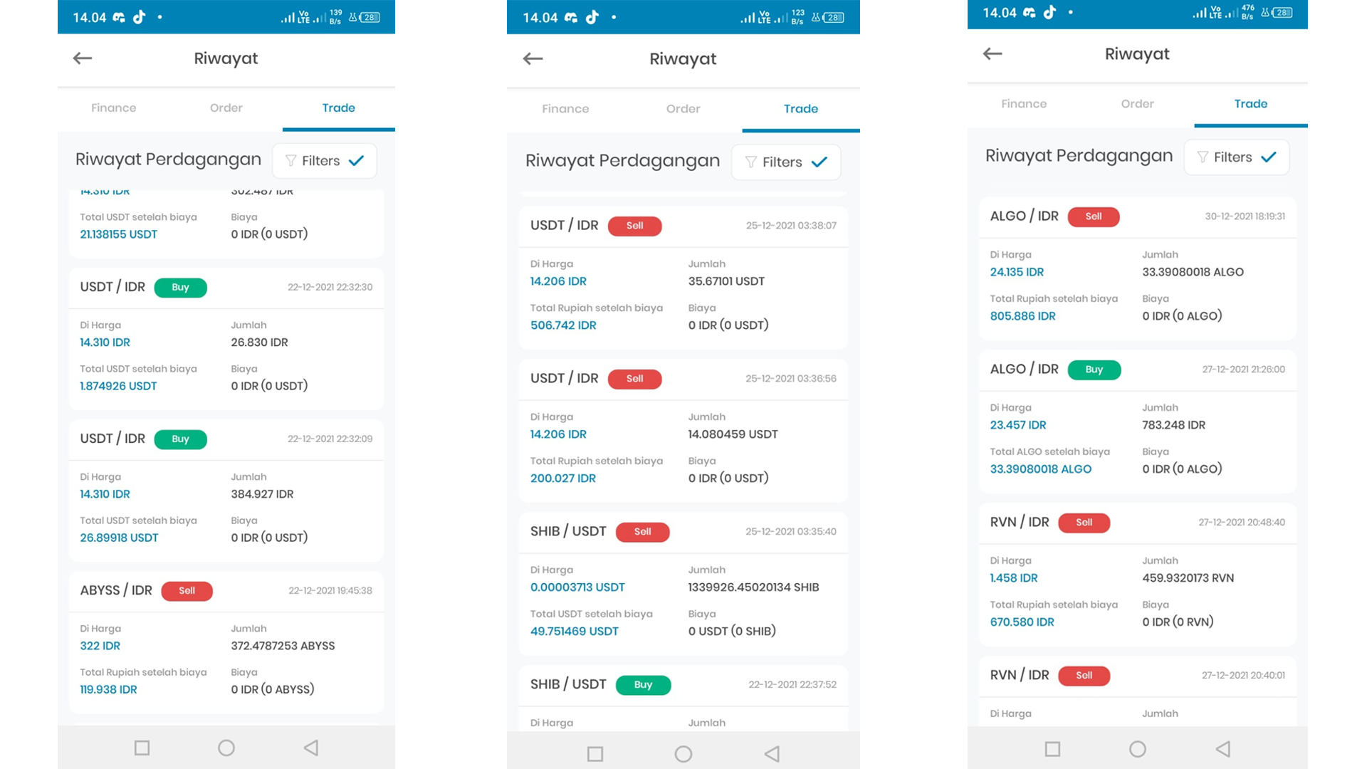 These are some of the trading histories that I did on the local crypto trading platform in my country, namely Indodax.