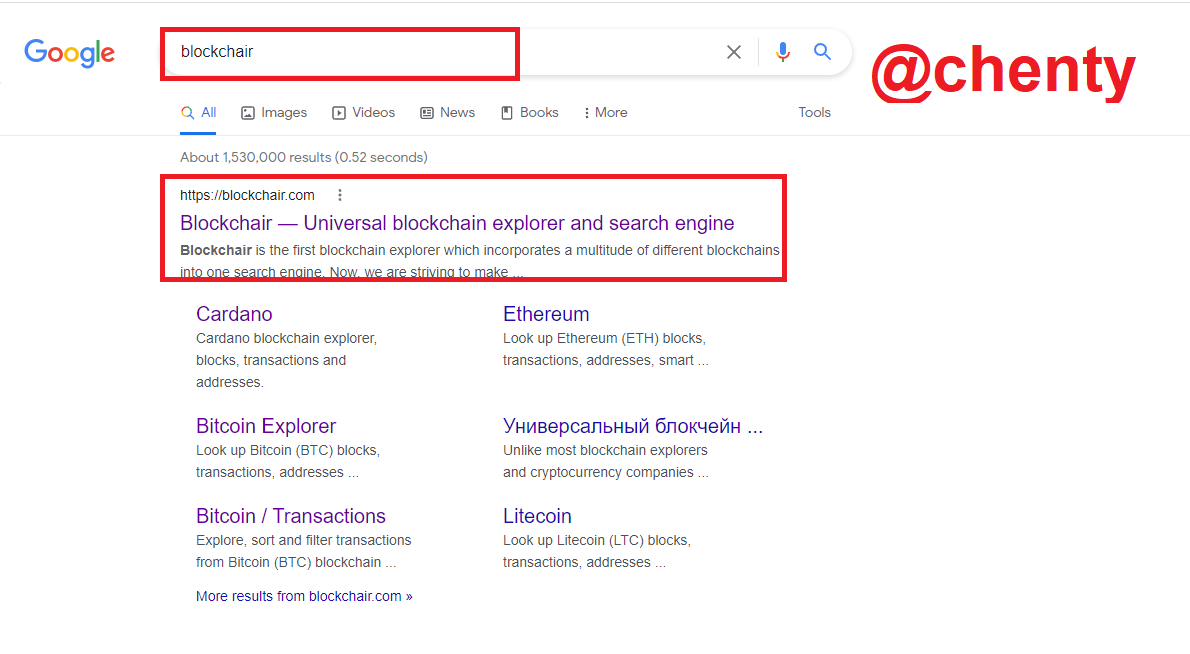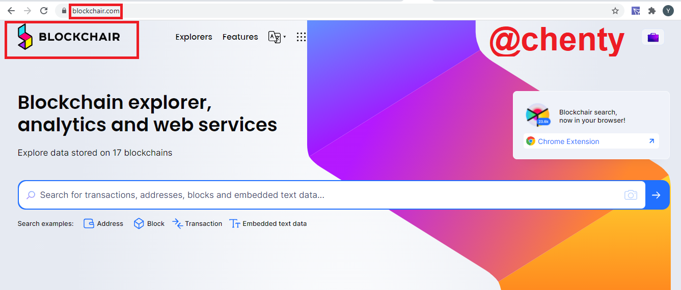 - Visit blockchair or type blockchair and click on the first result.