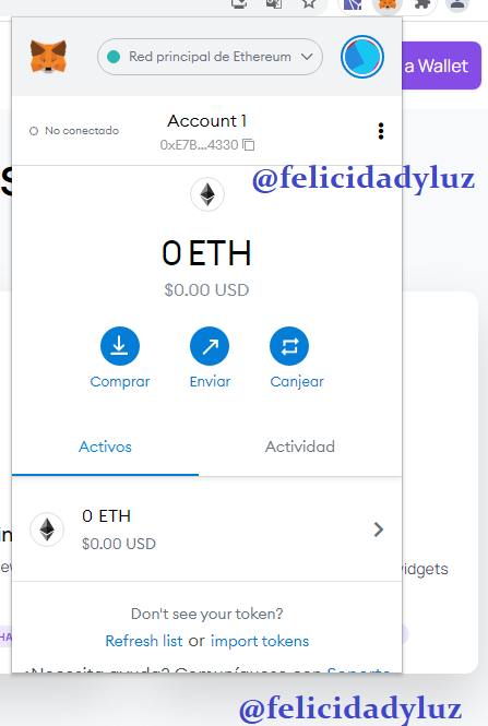 Como ven arriba, he abierto sesión de mi billetera de Metamask, a través de la extensión de mi browser Chrome.