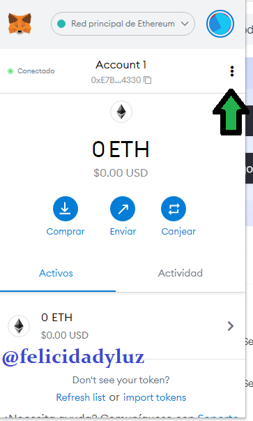 Como ven abajo, donde apunto con la flecha, en la esquina superior derecha de la pantalla, pueden ver que efectivamente se conectaron ambas wallets.