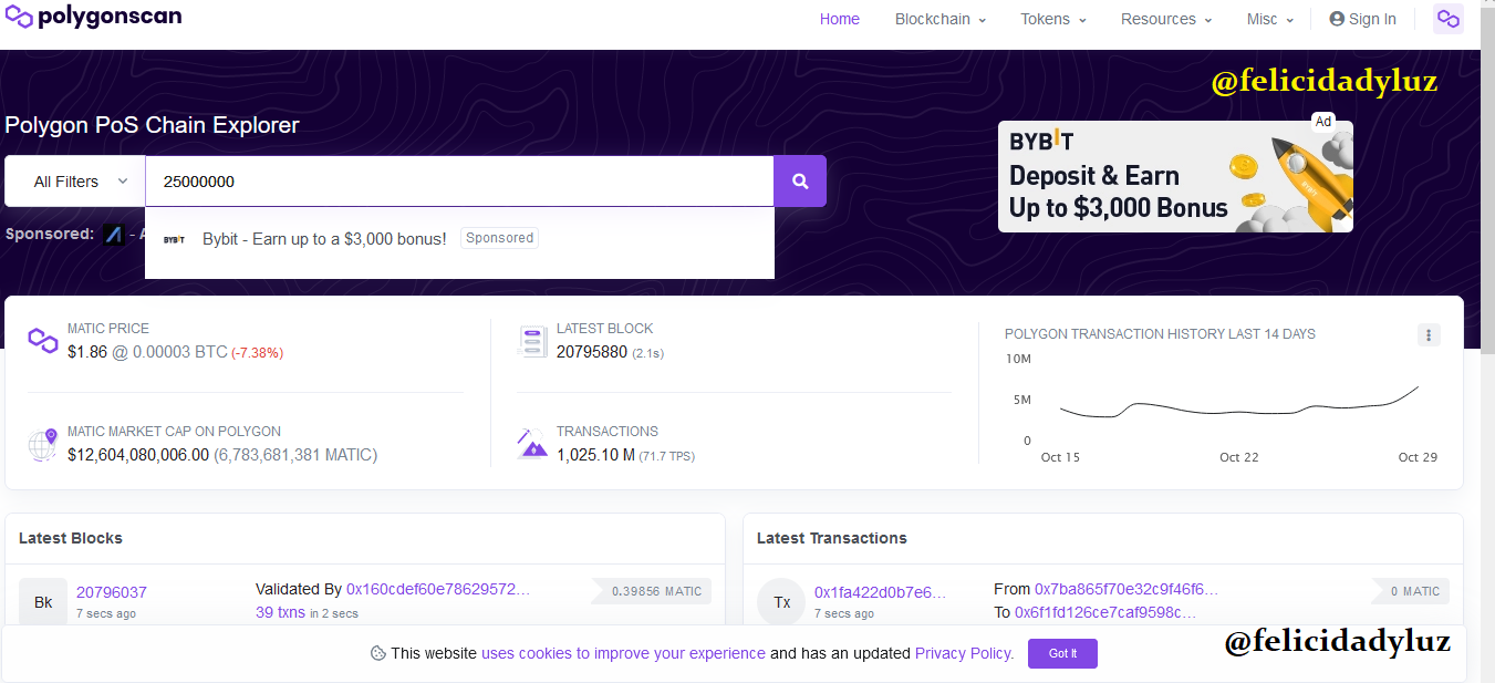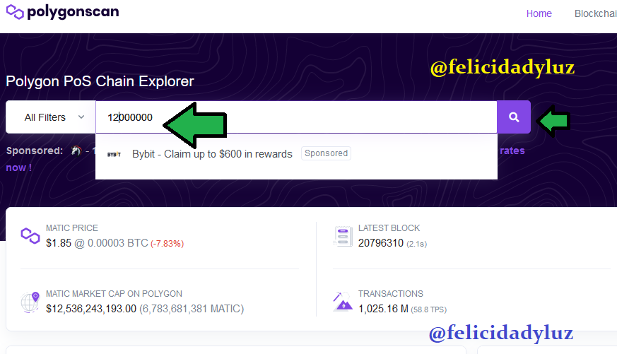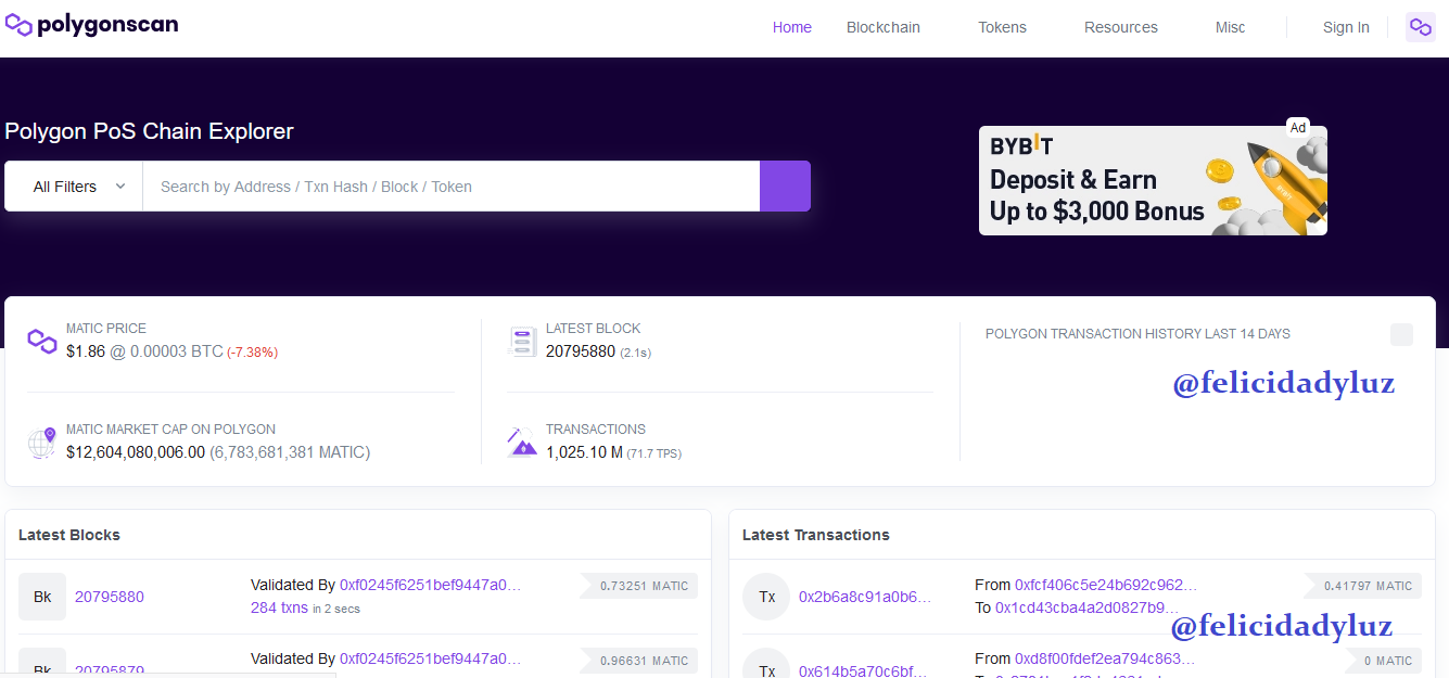 Vamos entonces a https://polygonscan.com/ que es el explorador de bloques de la blokchain de Polygon.