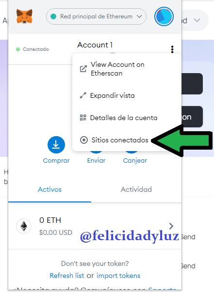 Pero si estamos algo escépticos, revisemos Metamask por si a las dudas.