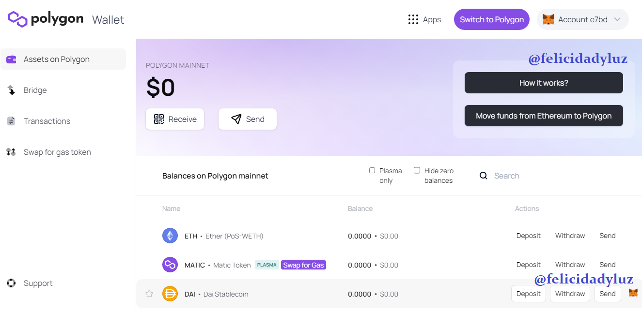 Imagen de interfaz de https://wallet.polygon.technology/