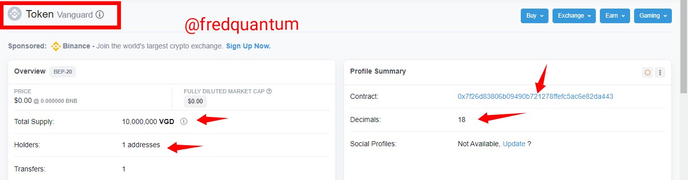 And above is the details of Vanguard which shows its contract address, total supply, number of addresses (1 at the moment), decimals and transfers.