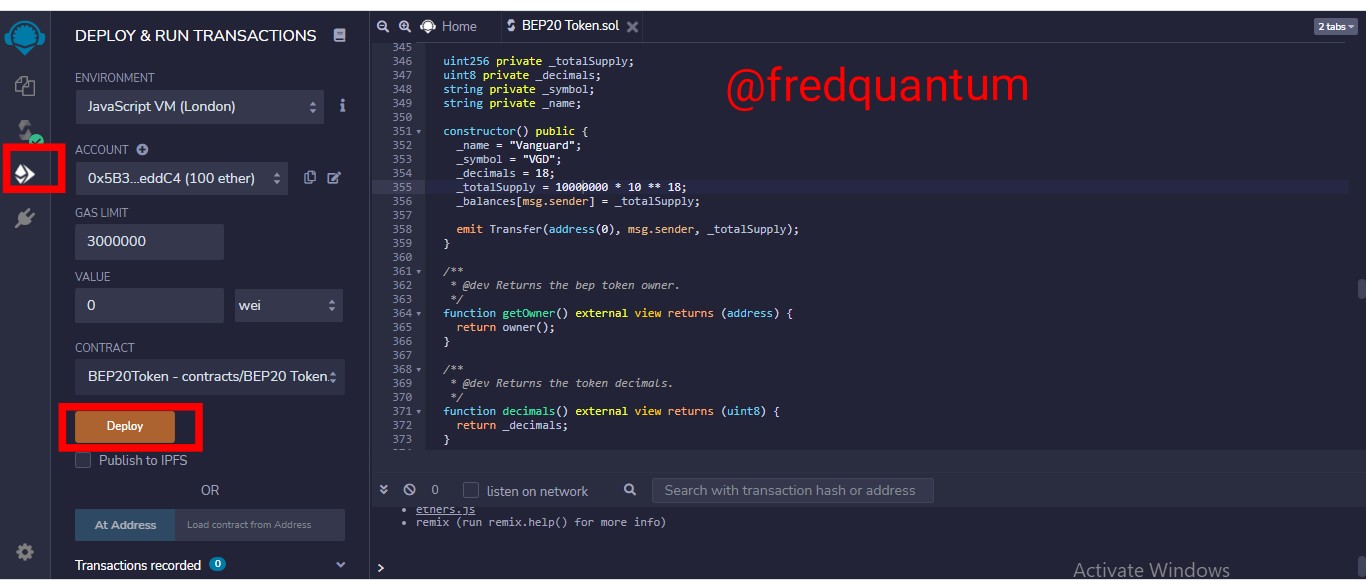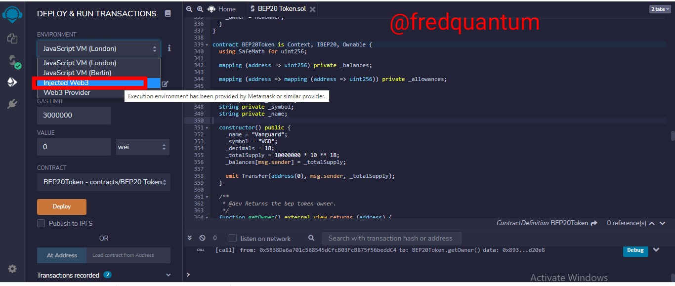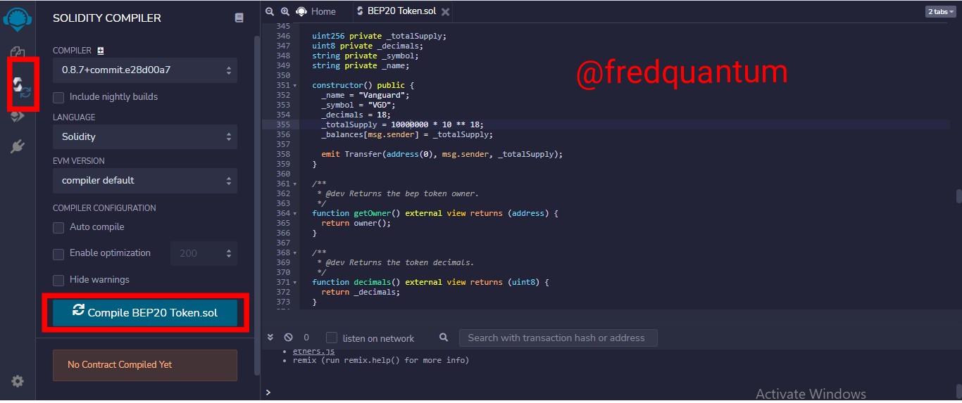 Compile BEP20 Token | Source-https://remix.ethereum.org/