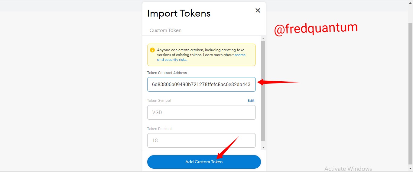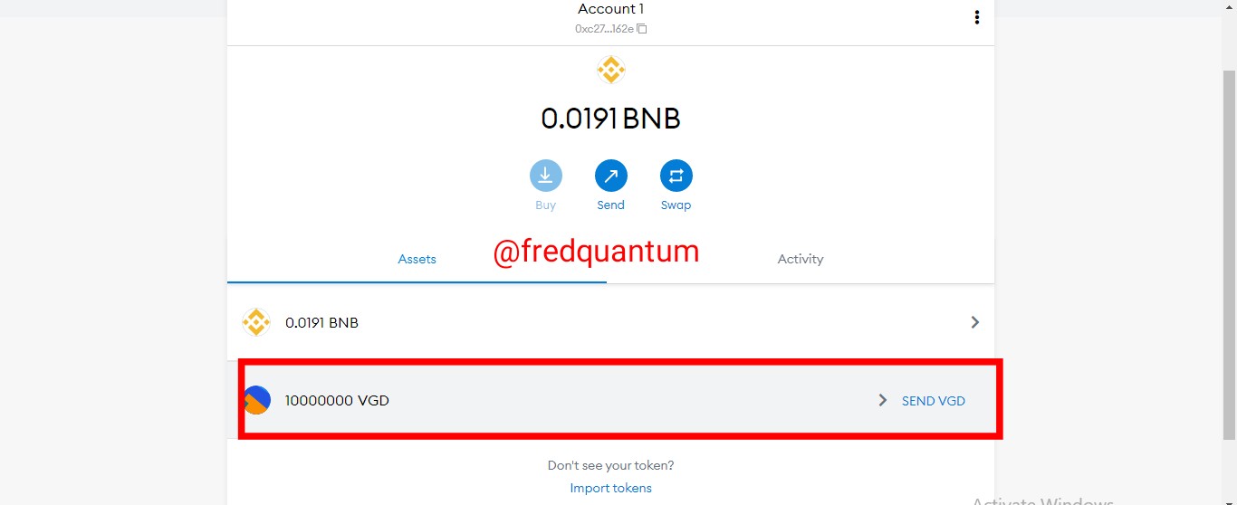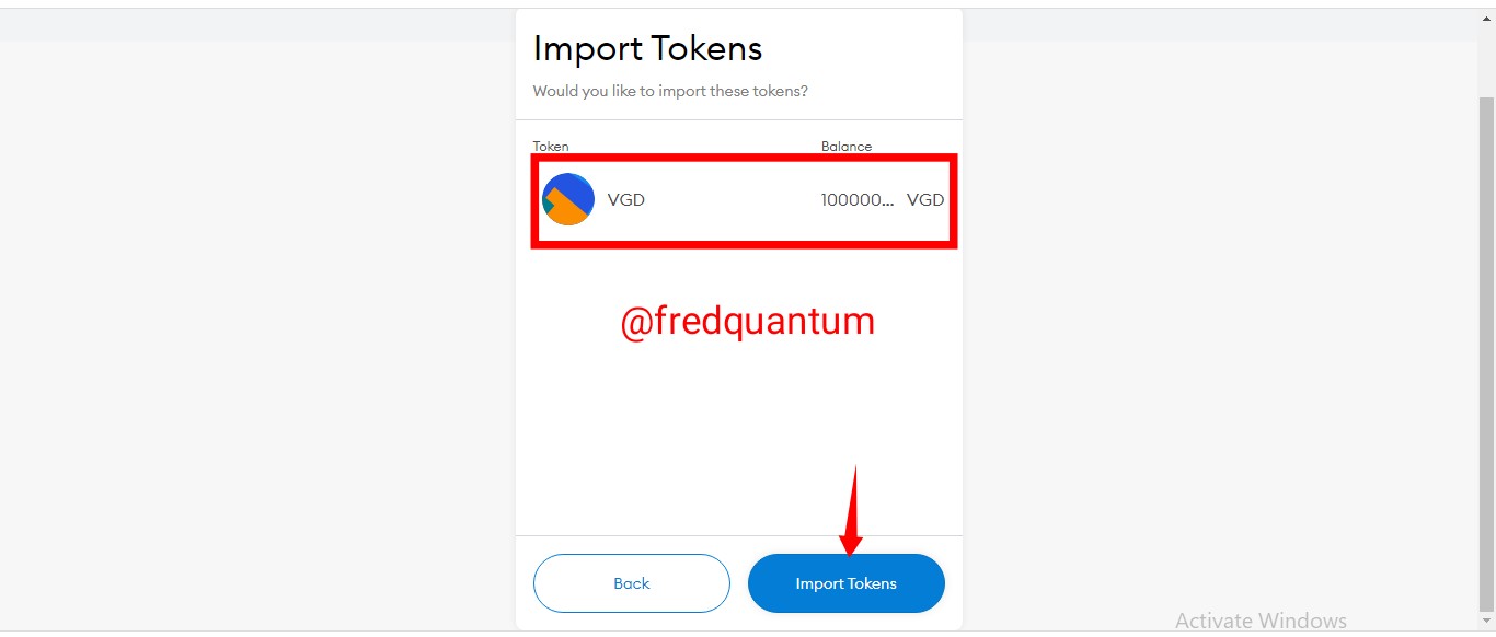 - On the next interface, my token surfaced with the total supply of 10 million VGD tokens and I clicked the Import Tokens button to confirm the adding process. See the screenshots below.