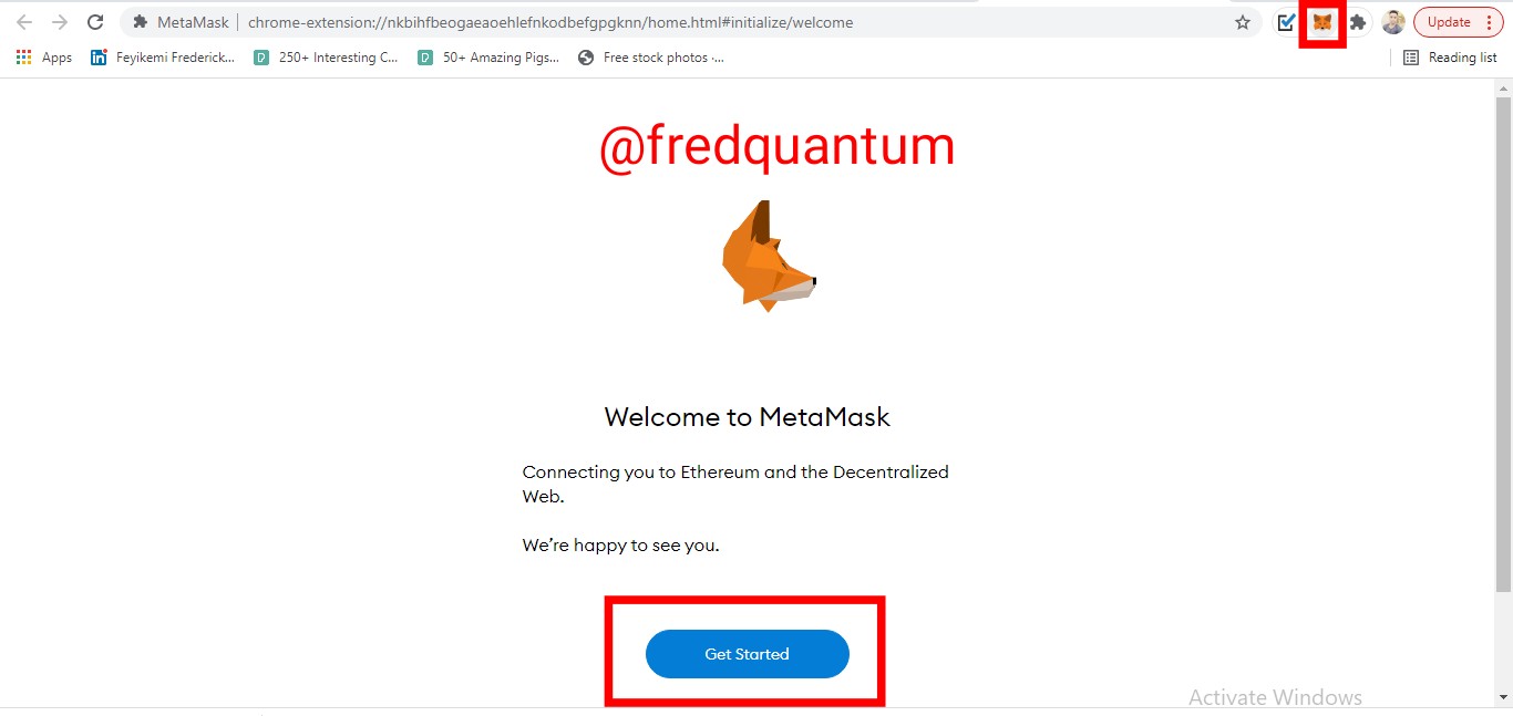 - To create a new wallet on MetaMask, I selected the extension at the top of the page. The extension is opened now, and I selected the Get Started button to proceed. On the next interface, I chose to Create a wallet. See the screenshots below.