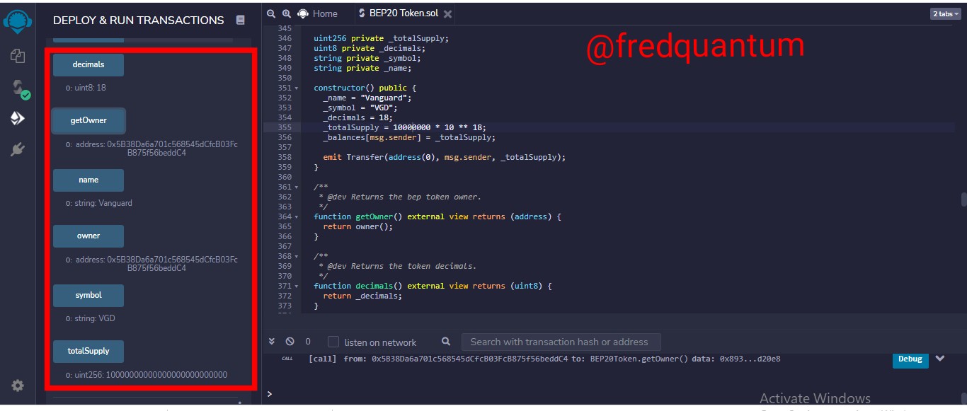 After the deploy action, we can see the details of the project like; name, symbol, owner name, decimals, total Supply, and so on. See the screenshots below.