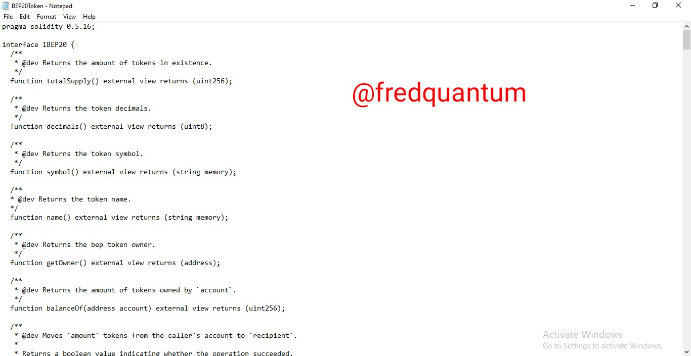 - I opened the contract code, BEP20 Token Template downloaded earlier, using my PC's notepad.
