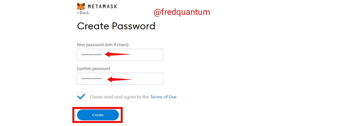 - On the next interface, I agreed to the terms of use which was followed by creation of password and then, hit the create button. See the screenshots below.