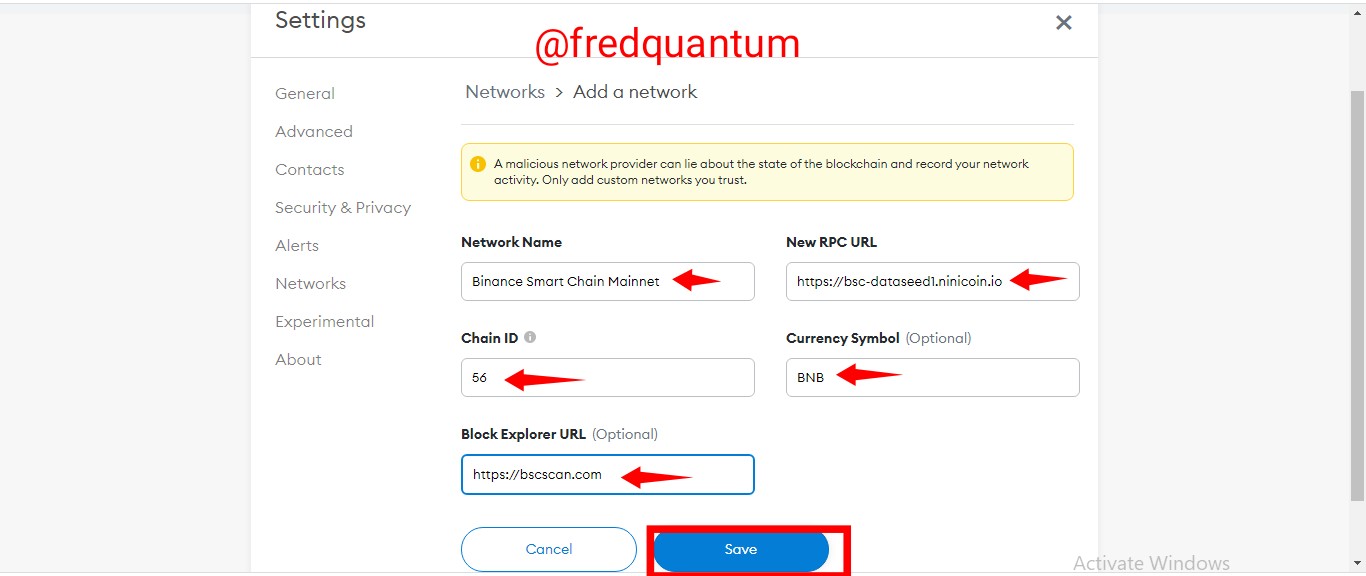 - New RPC URL: https://bsc-dataseed.binance.org or https://bsc-dataseed1.ninicoin.io. (I opt for https://bsc.dataseed1.ninicoin.io).