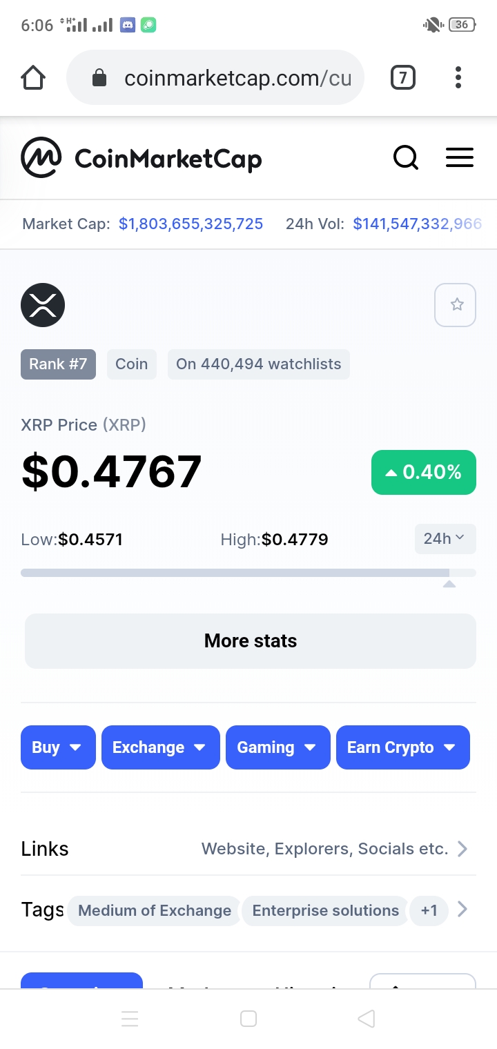Market Capitalization: Having XRP at that number 7 gives more assurance that the future of the crypto is bright. And as such, it is regarded as Mid capital assets categorized with less risk of investment and reasonable profits on investment.