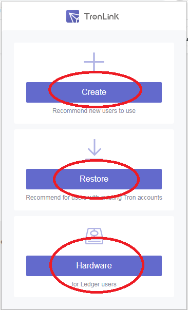 - TronkLink now offers you the choice of creating a new Tron wallet or restoring an existing Tron wallet. Personally, I have an old account so I can restore it.