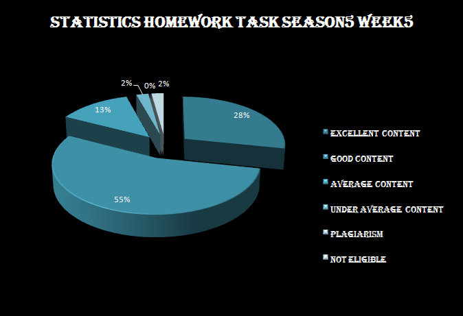Thus, the percentage of successful homework with a positive overall vote is over 96% versus 2% who failed to get a grade above average, and if that is anything to be said, the earnestness with which students get what they are asked and how well Their eagerness to learn and do their best to get the highest grades and best results.