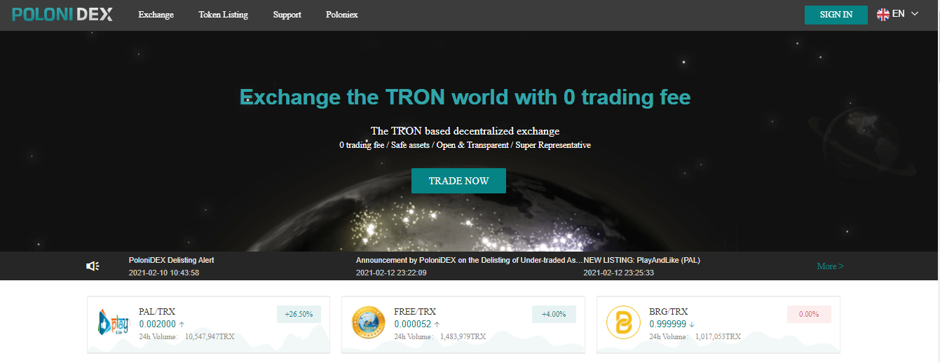 Poloni DEX is a decentralized exchange (DEX) launched in 2018. The platform is available in English, Chinese, Japanese and Korean.