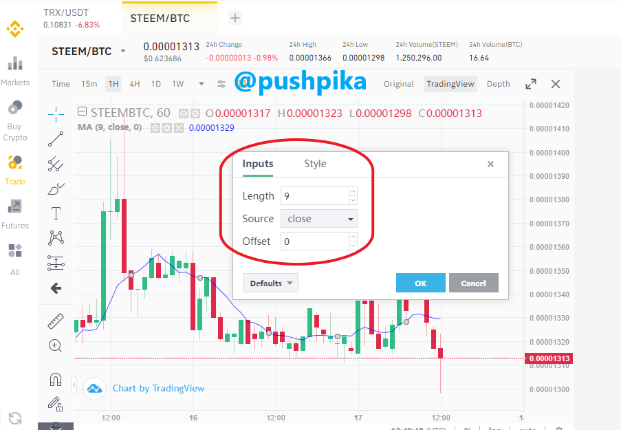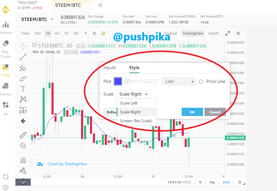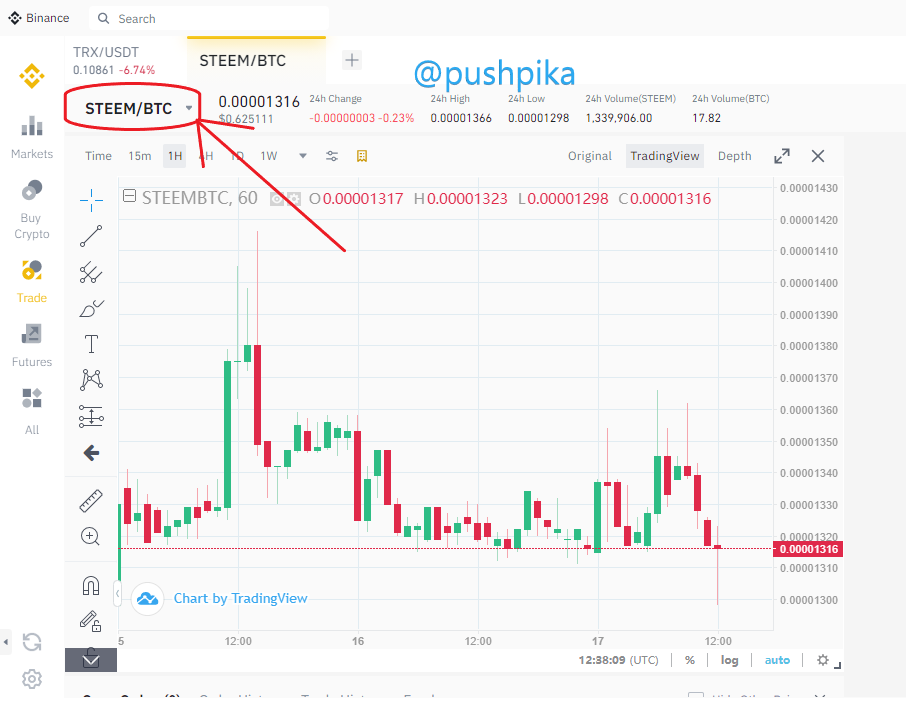 In the red circled line, you can see the currency pairs. Click the drop down menu to see all the currency pairs which was defined to be traded. I have used STEEM/BTC for my example.
