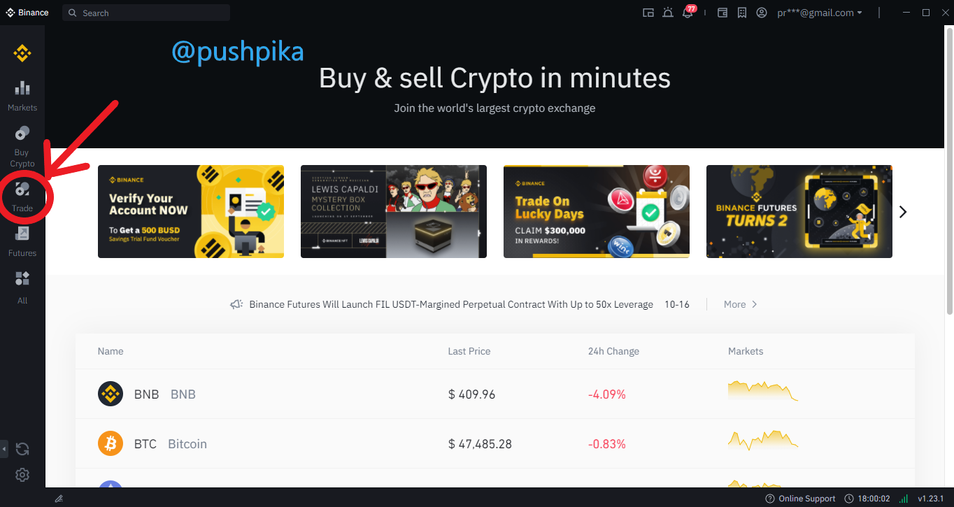 I have already created my Binance account for my trading. Open Binance and click on trading.
