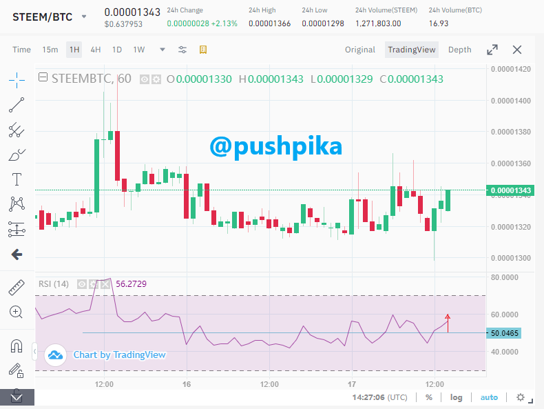 In RSI, reading above 50 indicates price rising and reading below indicated price reducing.