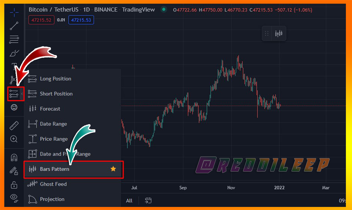 First of all, we can select this Bar Patterns tool and draw a line from left to right at a desired past chart pattern.