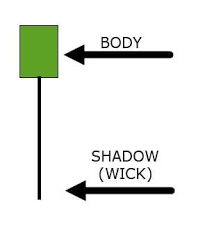 The other parts of the candlestick are the shadow and real body, the shadow illustrates the unsettled movement of price, areas that price moved through but couldn't close. In other words, the struggle between buyers and sellers.