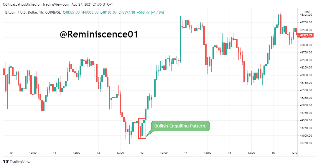 Similarly, when an engulfing candlestick pattern occurs in a downtrend, it clearly shows that buyers have taken control of price and when this happens, we usually see price reverse in the opposite direction.