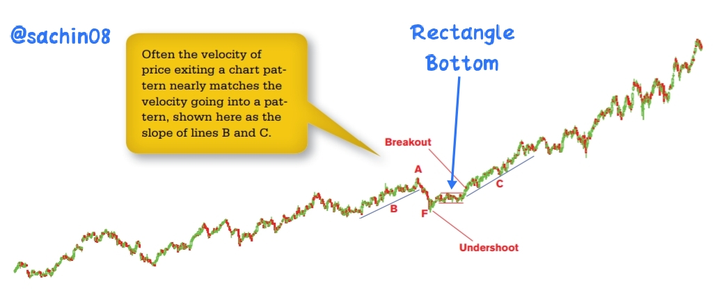 From the above image, We can notice a small Rectangle in the chart. You can zoom in the image and notice it. It is Rectangle Bottom as the Price trend higher at B and peaks at A and drops into the rectangle bottom. There, Price slides between the horizontal trendlines before breaking our upward.