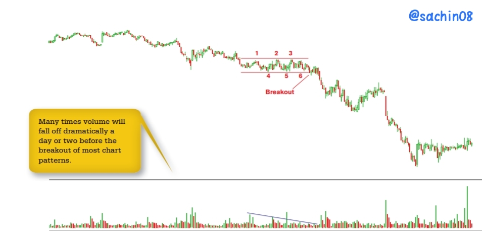 The exit from the Chart Pattern is known as Breakout. In the above chart, The Breakout is in downward direction but Breakout can be in any direction for Rectangle Pattern. I have highlighted the breakout point in the Chart.