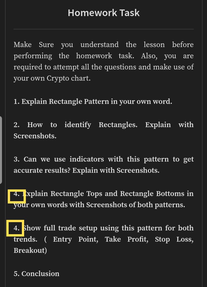 Make Sure you understand the lesson before performing the homework task. Also, you are required to attempt all the questions and make use of your own Crypto chart.