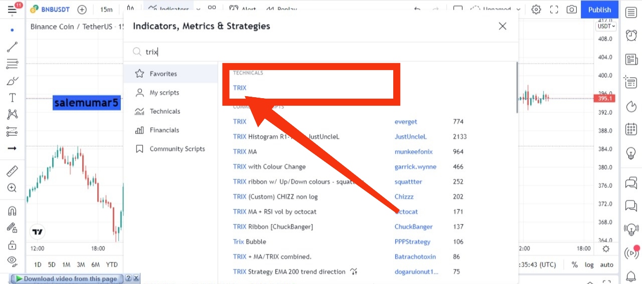 Go to tradingview link after you can see in picture below the the indicator option click in that and configure the TRIX indicator.