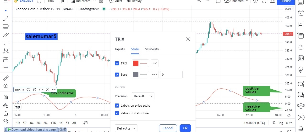 Configuration of TRIX Indicator: