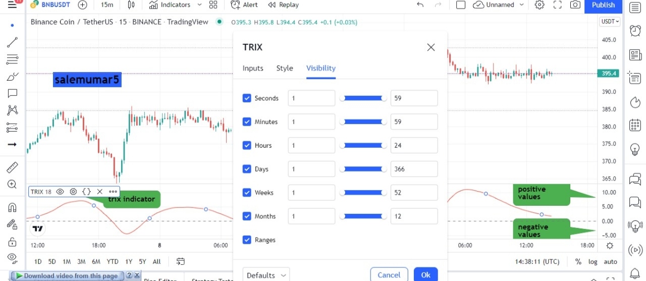 The TRIPLE EXPONENTIAL MOVING is interconnected with 14 EMA and its uses and recommended to be used because the moving averages based on closing price of coin whilst the falseness also prevented though volatility doesn't effect the indicator and price momentum is also move smoothly.