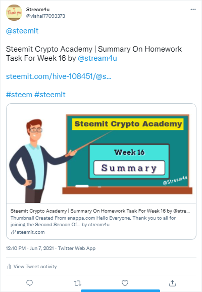 Thank you to all for joining the Second Season Of Steemit Crypto Academy and Participated In The Homework Task week 16.