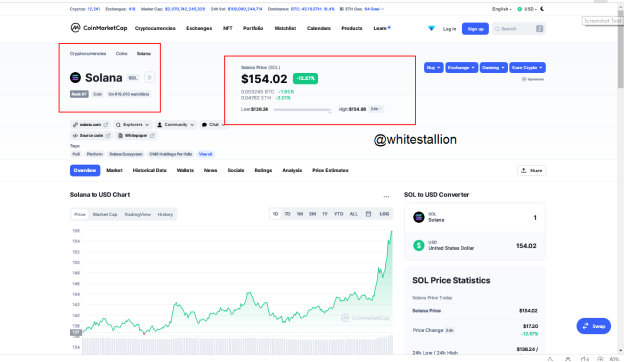 The SOL token has a market capitalization of $45,780,262,058.45. During my research, I consulted CoinMarketCAP which according to them, the SOL coin had a price of $153.54 when I was writing this assignment. It is a blockchain technology that works in such a way that it provides DeFi solutions to projects. It was launched in March 2020 and its operational headquarters is in Geneva, Switzerland. The SOL cryptocurrency reached $154.98 on 30th September 2021. The SOLA token is ranked #7 in the market capitalization rank. At this rank it has $2,632,042,720.47. as its the trading volume in the last 24 hours during the writing of this assignment.
