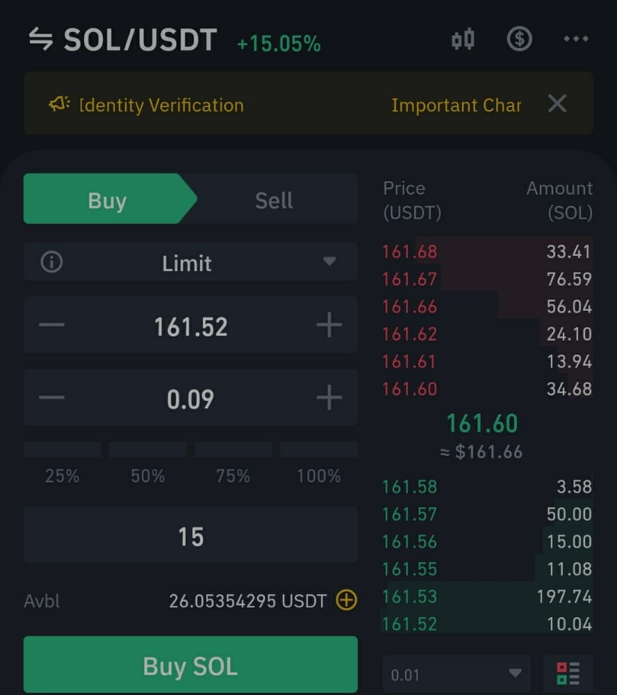 In order to purchase at least a 15$ equivalent of SOL, i made sure my account had more than $15