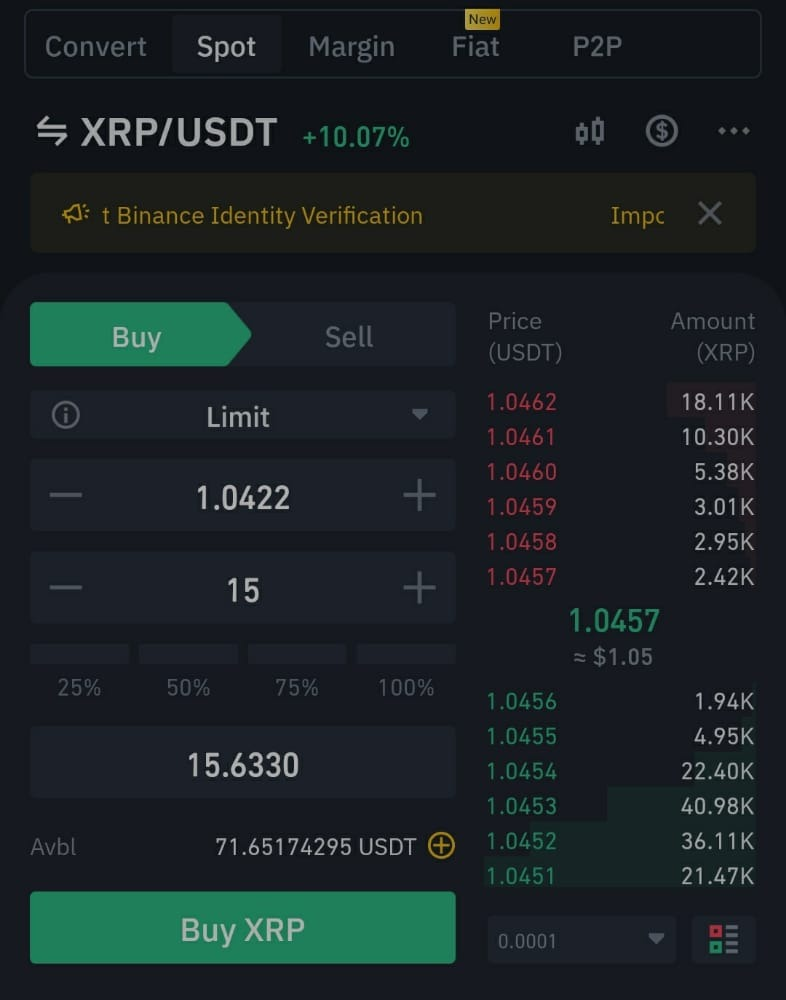 Place my limit price, Usdt amount and clicked on the Buy Tab.