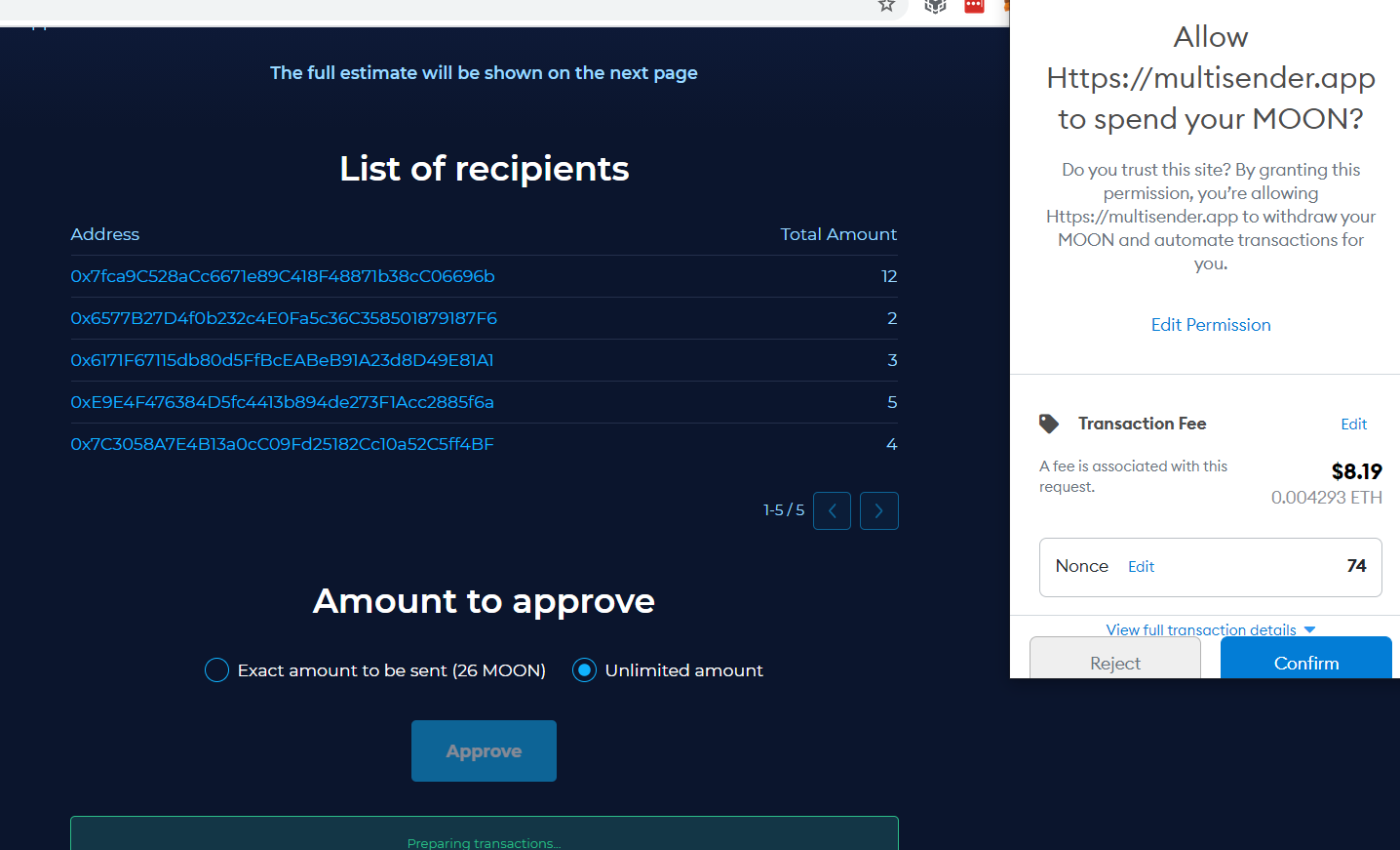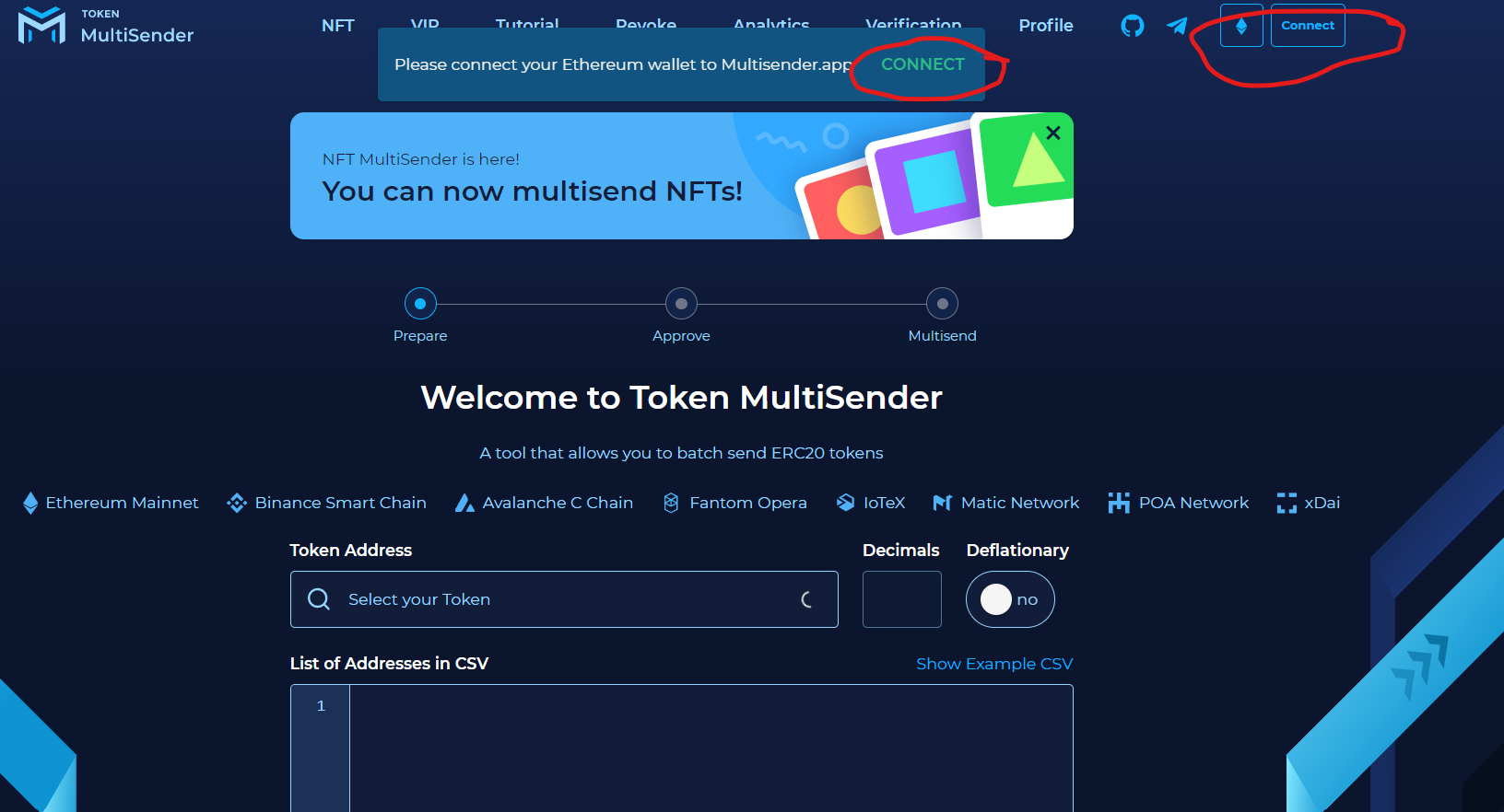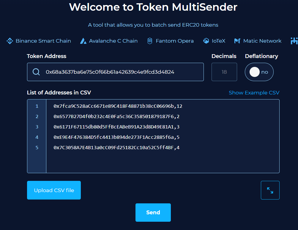 But the advantage of Multisender is that it also works with other blockchains like BSC, Fantom, Matic, Avalanche, xDai, IoTeX, PoA etc.