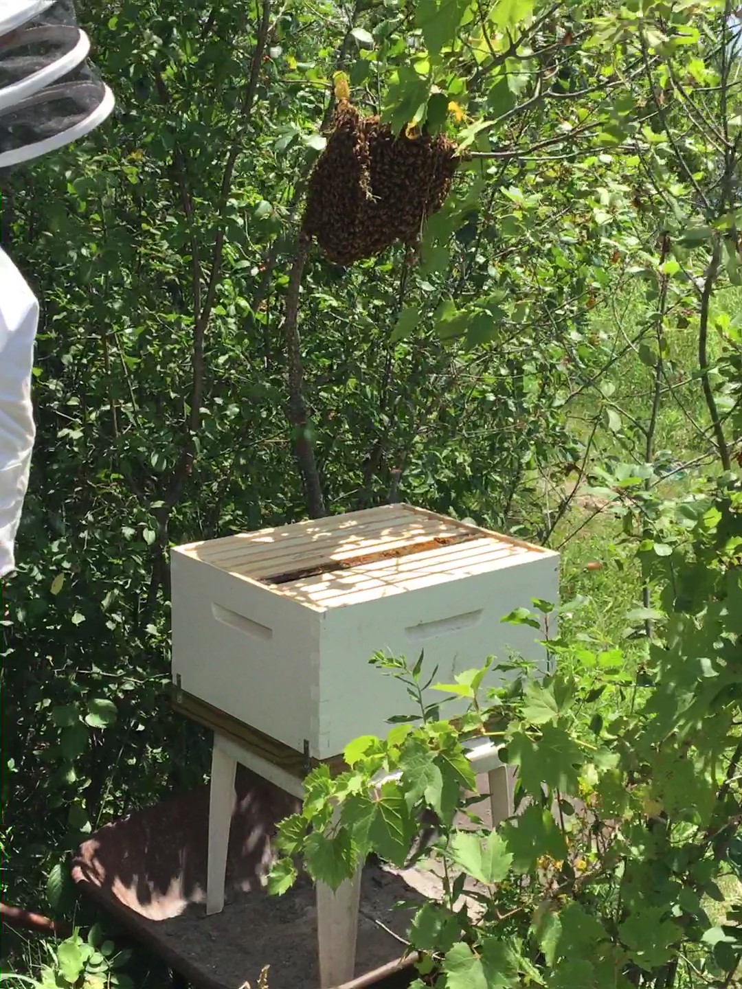 Neither I nor Dan got stung during this exchange, although there was a few instances where one or two bees tried. They were mostly unconcerned with us. Weird because we just shook them all from their home!