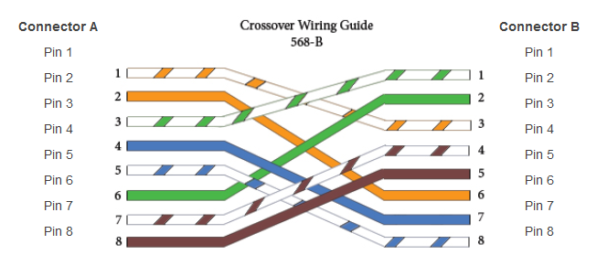 Another type of LAN cable is somewhat alike with the Straight-Through Wired Cables but the Transmitter (Tx) and the Receiver (Rx) lines are being crossed that is connected with opposite positions on either of the cables end. So we are using the T568B Standard as an example. As you can see that the Connector A is the same color sequence with the Straight-through Wired Cable connectors, but it is being connected crisscrossed to the Connector B.
