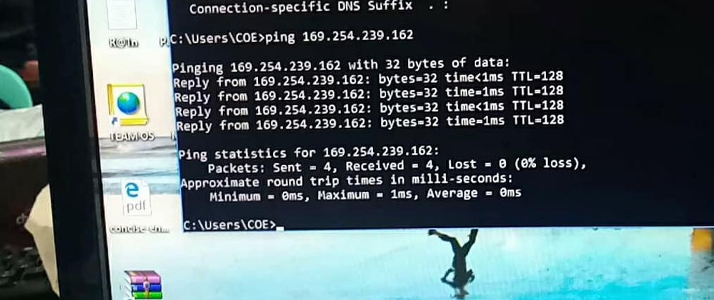 We can see that the other computer is pinging with the other computer. This could be a good start to basic network.
