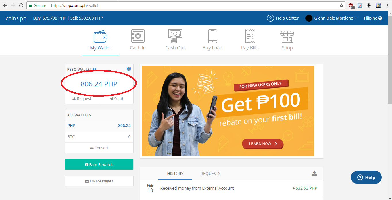 #Twelfth, Go to your coins.ph wallet and see if you are receiving money like what shown below.