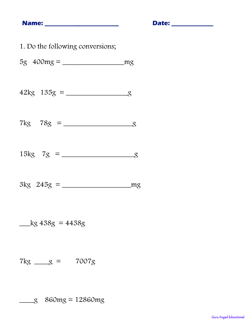@mukhtarilyas, for a kilogram unit conversion can use a unit ladder, if it drops one level at 10 times, and if it rises one level divided by 10, how @mathworkhseets.