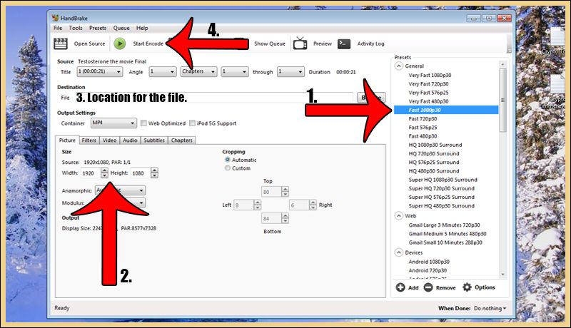 Now you select where you want to save the file (click the browse button on the right side) and when you are done with that you click on "Start Encode" to start the conversion process (can take longer depending on the original file size).