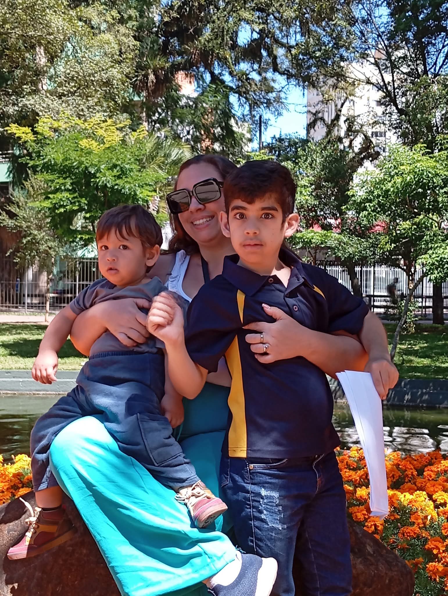 Se nos presentó la oportunidad de venirnos a Brasil. Nos ayudaron y aquí ya llevamos dos años. Nuestro hijo Marco tiene una buena atención médica y muchos beneficios, ha progresado bastante. En cuanto al chirulino de Abel, ¡mi alma, en serio, no se cansa! Es muy activo, y aunque me agota, me hace tan feliz.