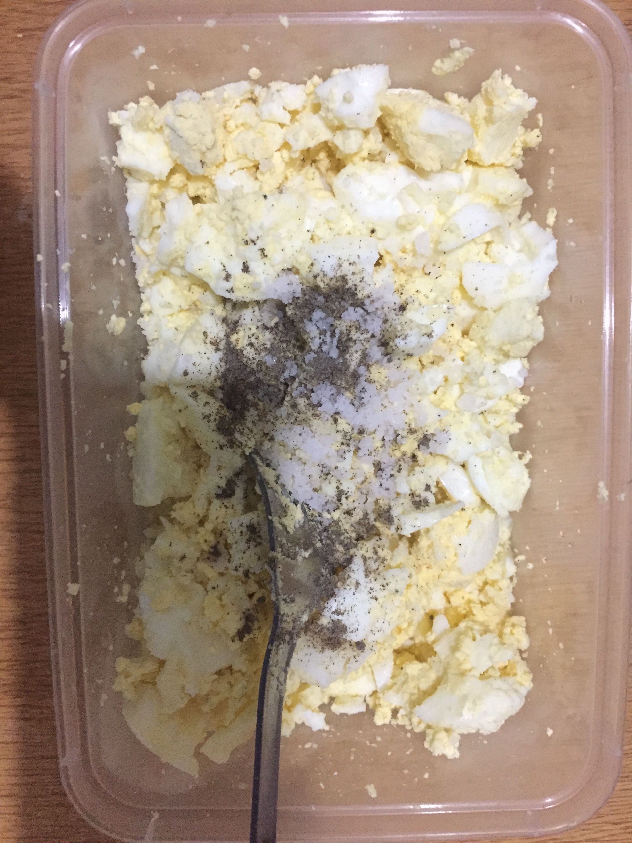 - Once done squashing it with a fork, add a pinch of salt and pepper to taste then stir.