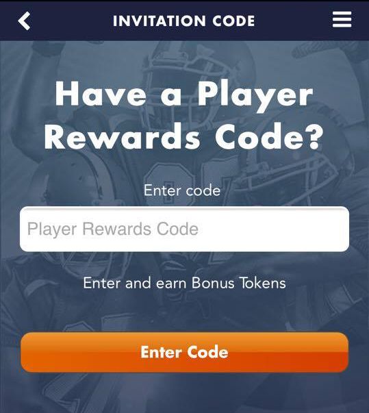 Which will take you to the next page the PLAYERS REWARD CODE, or invitation to the app code as seen below...