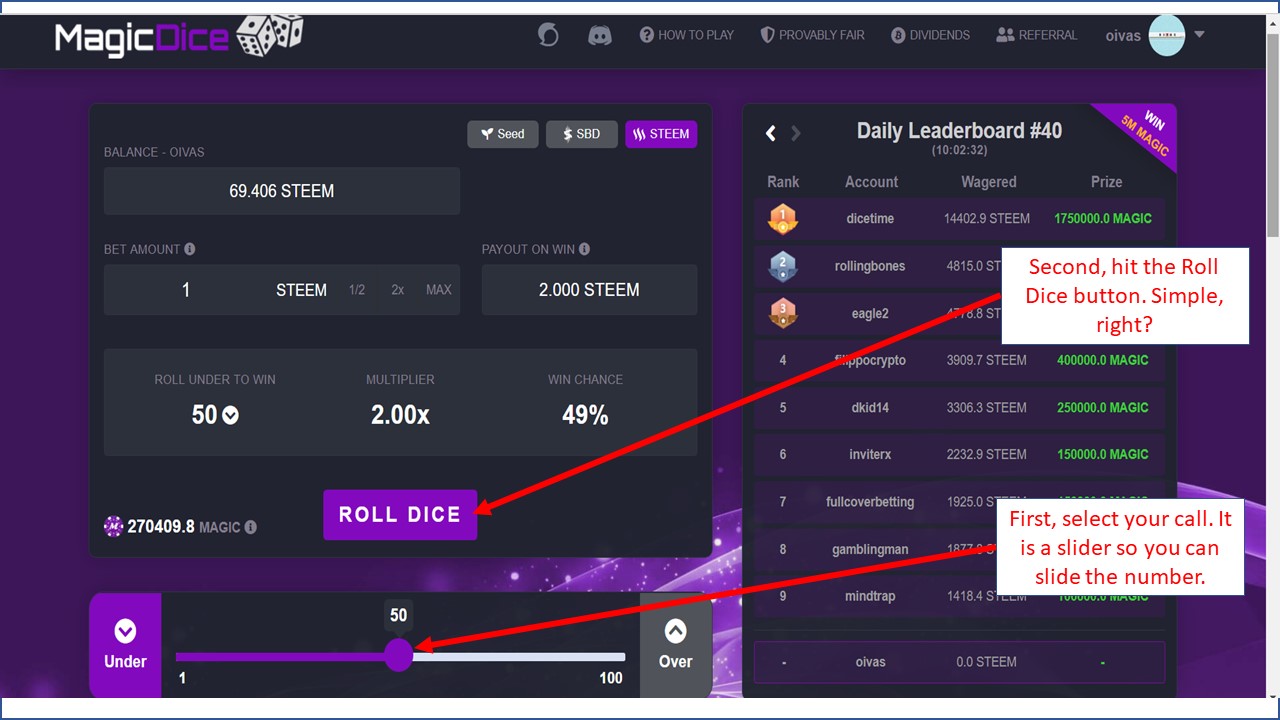In my opinion, Magic Dice offers the most opportunities to earn both Steem and MAGIC tokens.